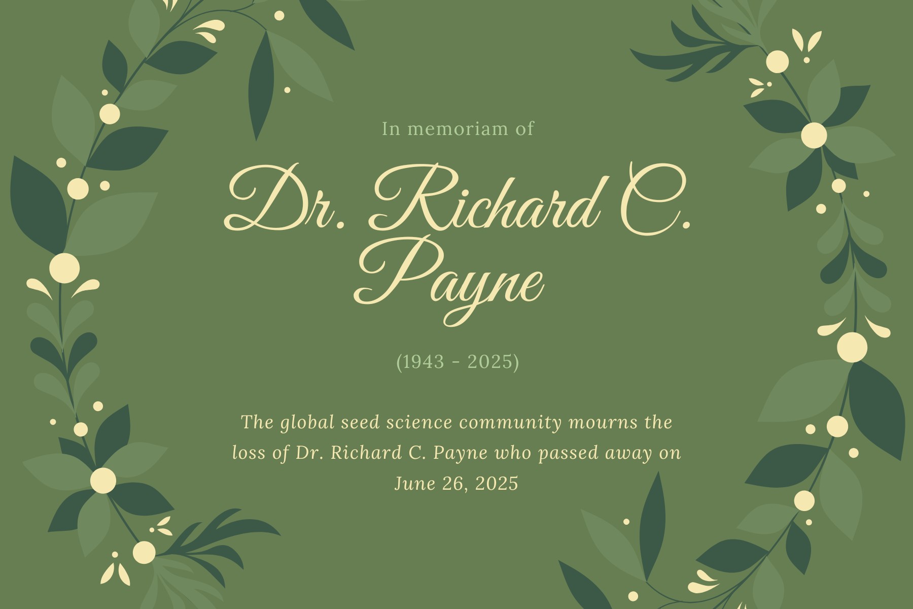 | Condolences In Memoriam: Dr. Richard C. Payne (1943 – 2025) The global seed science community mourns the loss of Dr. Richard C. Payne who passed away on June 26, 2025. A visionary leader whose pioneering work shaped seed testing protocols both domestically and internationally, Dr. Payne’s legacy is one of enduring excellence and profound influence. Dr. Payne’s distinguished career began in 1975 when he joined the USDA’s Seed Regulatory and Testing Branch (SRTB) as a plant physiologist. He immediately made his mark by developing and standardizing groundbreaking laboratory testing procedures to distinguish between varieties of agricultural and vegetable species—a critical foundation of seed science. His expertise propelled him to Laboratory Supervisor in 1982, a role that ushered him onto the international stage. Representing the USDA at the International Seed Testing Association (ISTA), Dr. Payne’s leadership was quickly recognized. As Chairman of the ISTA Variety Committee, he spearheaded the first major revision of the seminal Testing for Genuineness of Cultivar handbook in 1993, a pivotal contribution that harmonized global standards. In 1999, Dr. Payne was appointed Chief of SRTB, where he provided overarching administration for the USDA’s regulatory, laboratory, and outreach programs. In this capacity, he became a central figure for the domestic seed industry, earning numerous honors from the Association of Official Seed Analysts/Society of Commercial Seed Technologists (AOSA/SCST), the American Seed Trade Association (ASTA), the Association of American Seed Control Officials (AASCO), the Association of Official Seed Certifying Agencies (AOSCA), and others for his decades of dedicated service to the seed industry. Dr. Payne’s intellect, dedication, and leadership fundamentally guided the course of seed science. While he will be deeply missed, his foundational contributions continue to ensure the quality, integrity, and security of the world’s seed supply. |